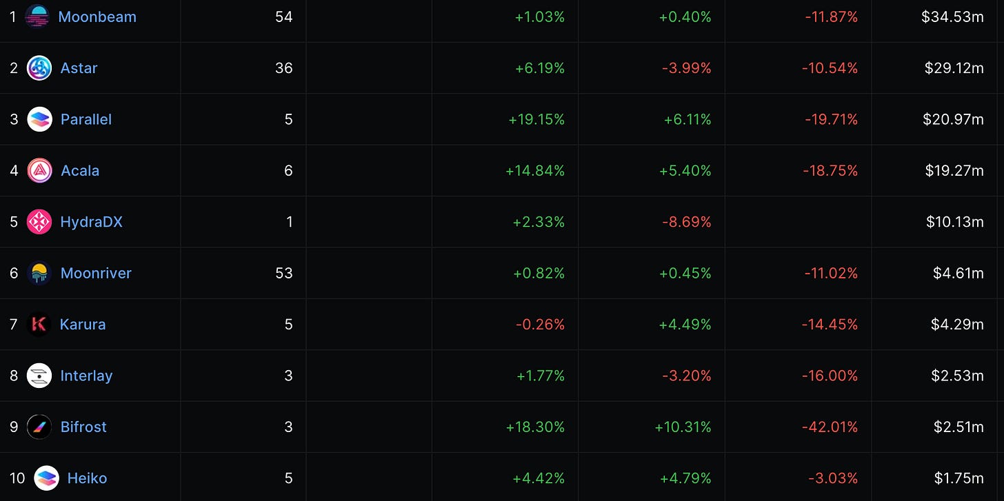 It’s no secret now that Polkadot has fallen short of users compared to other chains, like Ethereum, L2s, Solana, etc. If we look at the top parachains by TVL, we can see it’s not too high right now. Below we can see the top 10 parachains by TVL:
