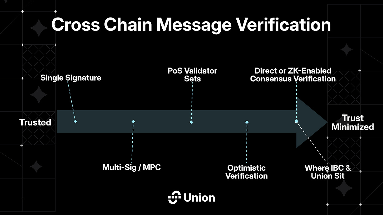 Trust minimized solutions like IBC on the other hand sit at the right end of the spectrum: