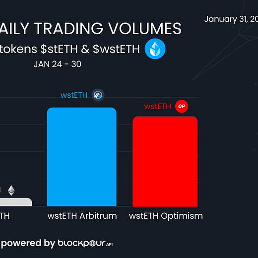 According to data from Blockpour, a multichain defi data and analytics platform, both Optimism and Arbitrum each have over 10x the stETH trading volume compared to Ethereum!