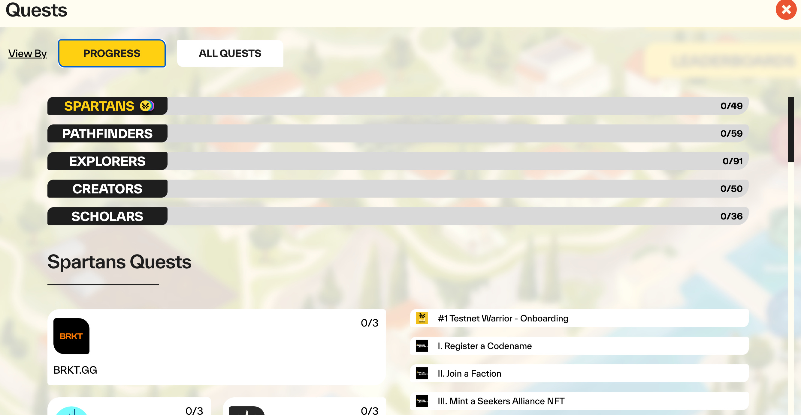 Each guild has its own set of quests you can start achieving, as well as its own set of resources you can win for completing these quests. Here’s the Spartan quests page, for example: