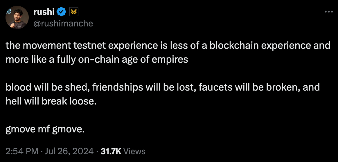As Movement founder, Rushi, states, this testnet experience is more like an onchain game of empires.