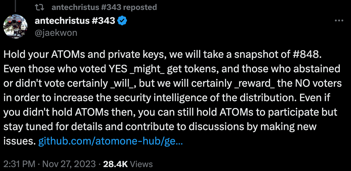 So, $ATOM holders may be in line for another airdrop 👀