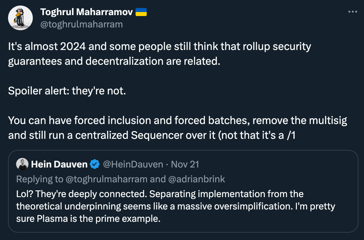And here’s Toghrul with the weather on rollup forced inclusion and why sequencers aren’t in charge of rollup security.